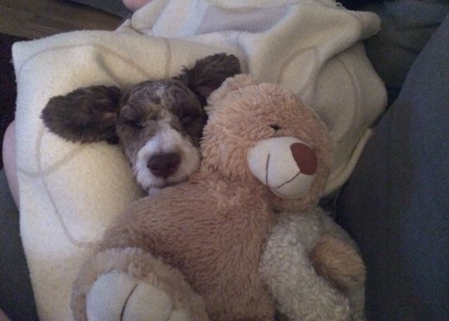 Idag kan vi inte tänka oss ett liv utan Wimzy. Vi har 3 barnbarn i åldern 4 månader, 2 år och 5 år. Wimzy accepterar dem helt och hållet. Hon har aldrig sagt till när de leker med henne eller undersöker henne. De kan kika in i munnen på henne eller lägga sig ner och ha henne som dyna. När hon får nog flyttar hon lugnt på sig.